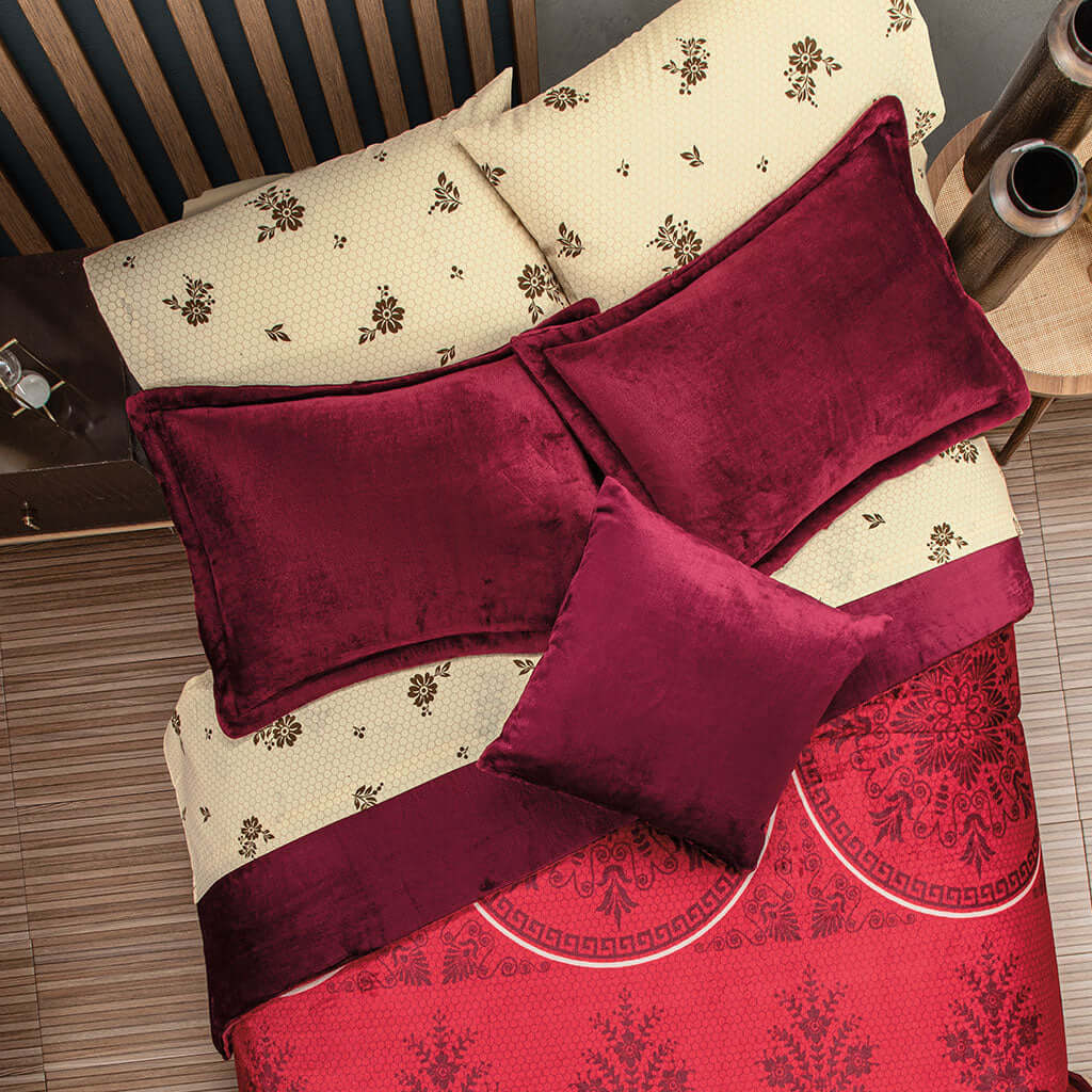 • King Jumbo : • 1 Cobertor (2,65 m x 2,20 m / 104" x 87") | • 3 Fundas Decorativas | 1 cojin | • 1 Juego de sabanas |